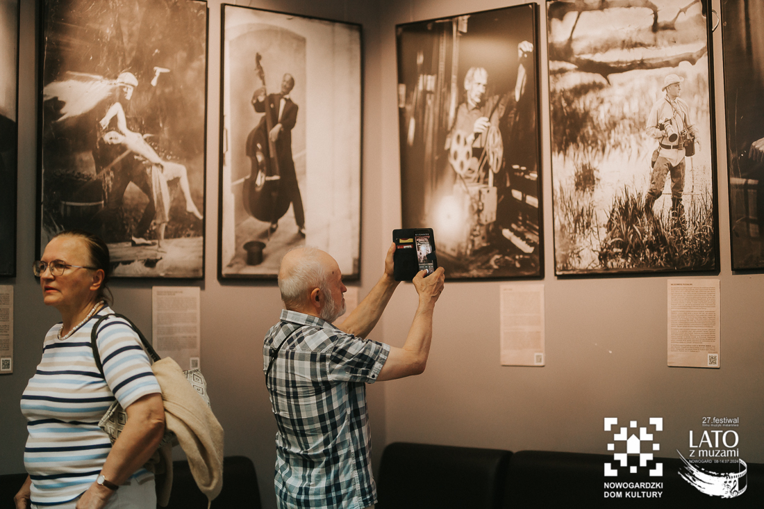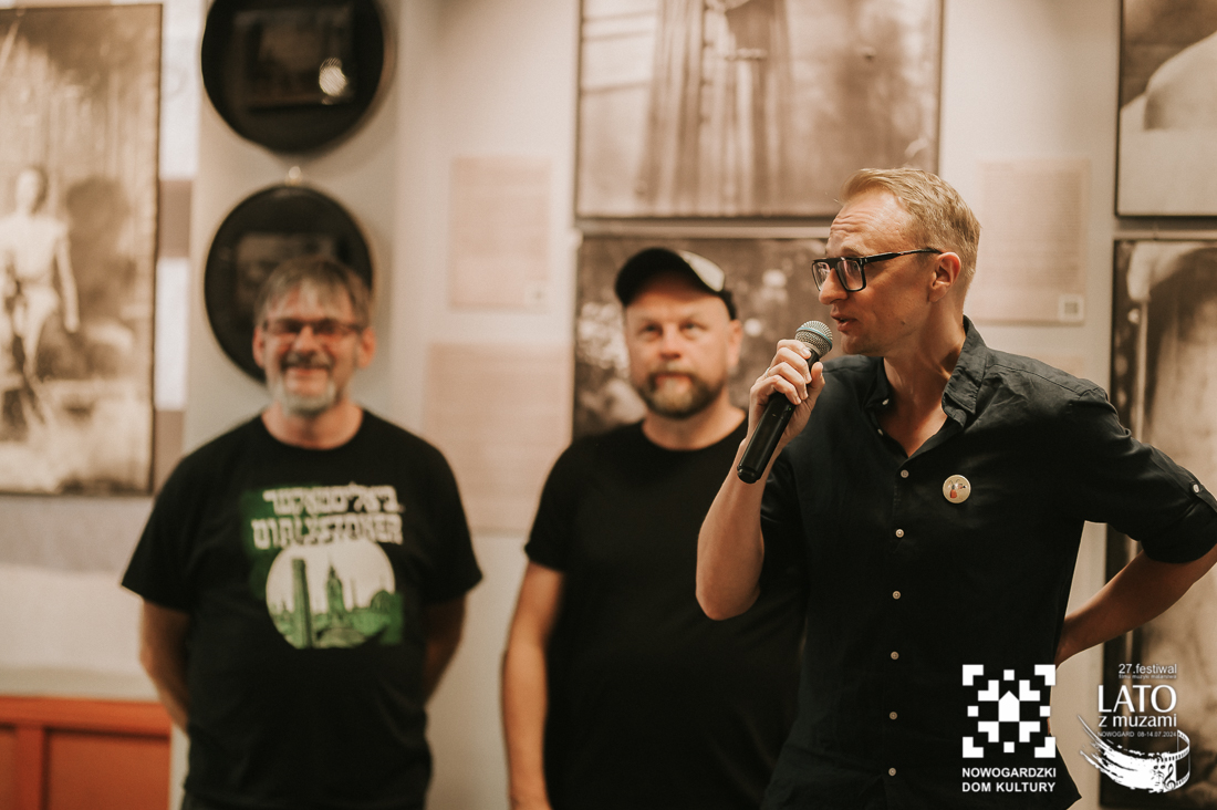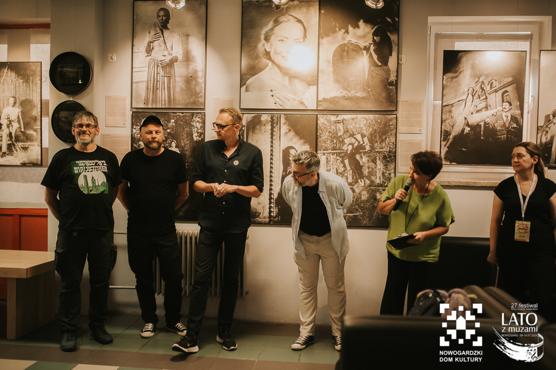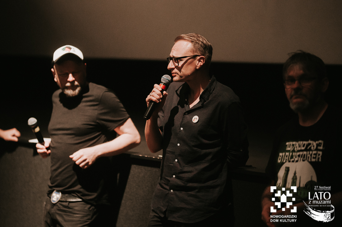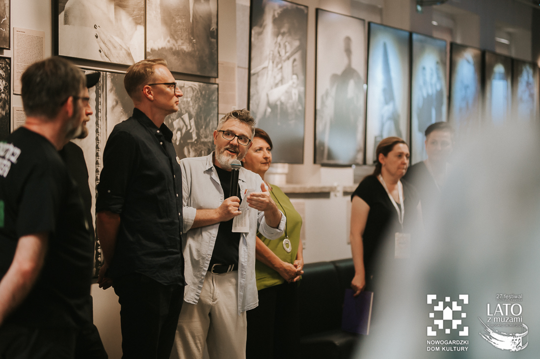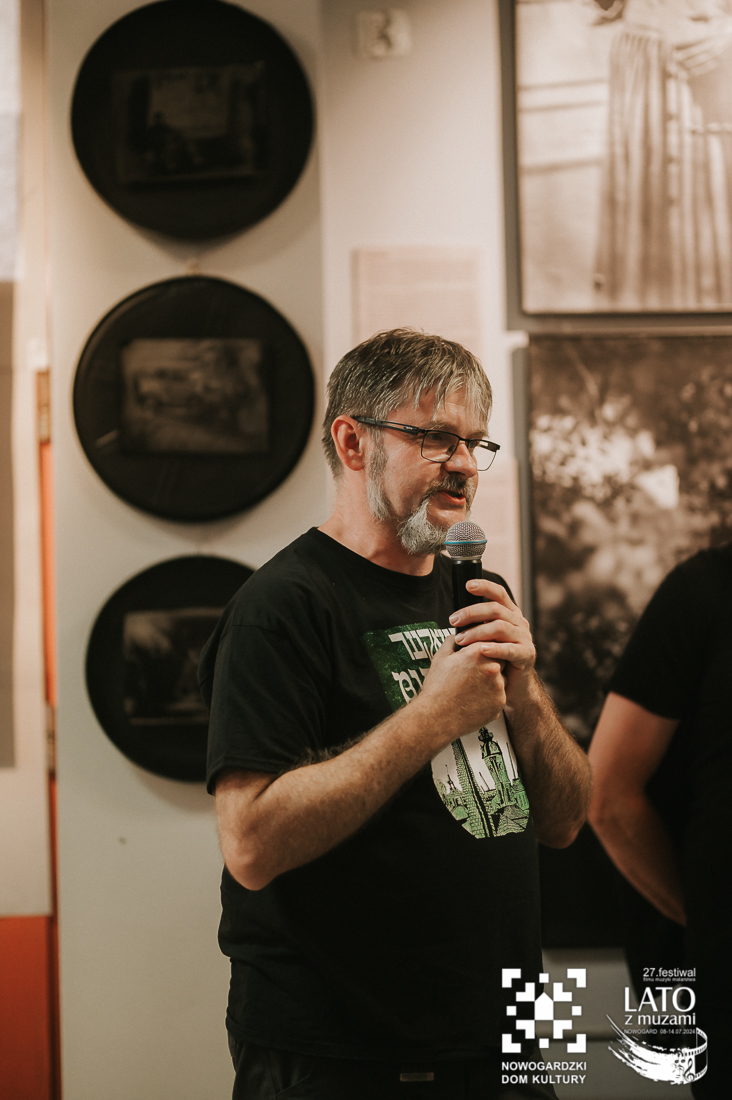O tych ludziach właśnie, tych nieco zapomnianych, a wybitnych osobistościach, przypomina nam wystawa „Wyśniona historia kina na Podlasiu”. To nie tylko pełne kunsztu zdjęcia wykonane archaiczną techniką mokrego kolodionu, ale również historie, które tworzą razem niesamowitą i wyjątkową opowieść. Wernisaż uatrakcyjniły relacje z pierwszej ręki twórców, którzy byli razem z nami w ten poniedziałkowy wieczór. Andrzej Górski, Tomasz Adamski i Maciej Rant pokazali nam nie tylko historię kina, dzięki Nim zobaczyliśmy również cząstkę podlaskiego życia. Po oficjalnym otwarciu wystawy mieliśmy również okazję obejrzeć na dużym ekranie blok filmów związanych z Podlasiem, z ich kulturą, miłością do natury, a także z bieżącymi problemami. Pisaliśmy już o tym, że zadaniem Festiwalu jest wywoływanie refleksji i głębokich rozważań? Tym razem również tego nie zabrakło. Wszystko odbywa się jednak w przemiłej atmosferze i przy kulturalnych rozmowach. Wernisaż zakończył poczęstunek podlaskimi przysmakami. Mieliśmy też okazję powalczyć z duchem puszczy 😉 – wszyscy z tej walki wyszli obronną ręką. To był przemiły wieczór, a kolejne dni zapowiadają się równie dobrze. Zapraszamy na bajki, filmy, spotkania z twórcami. Obiecujemy, że wrażeń nie zabraknie.