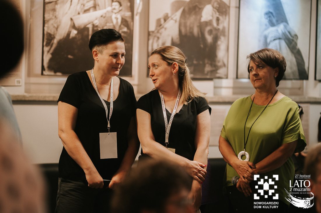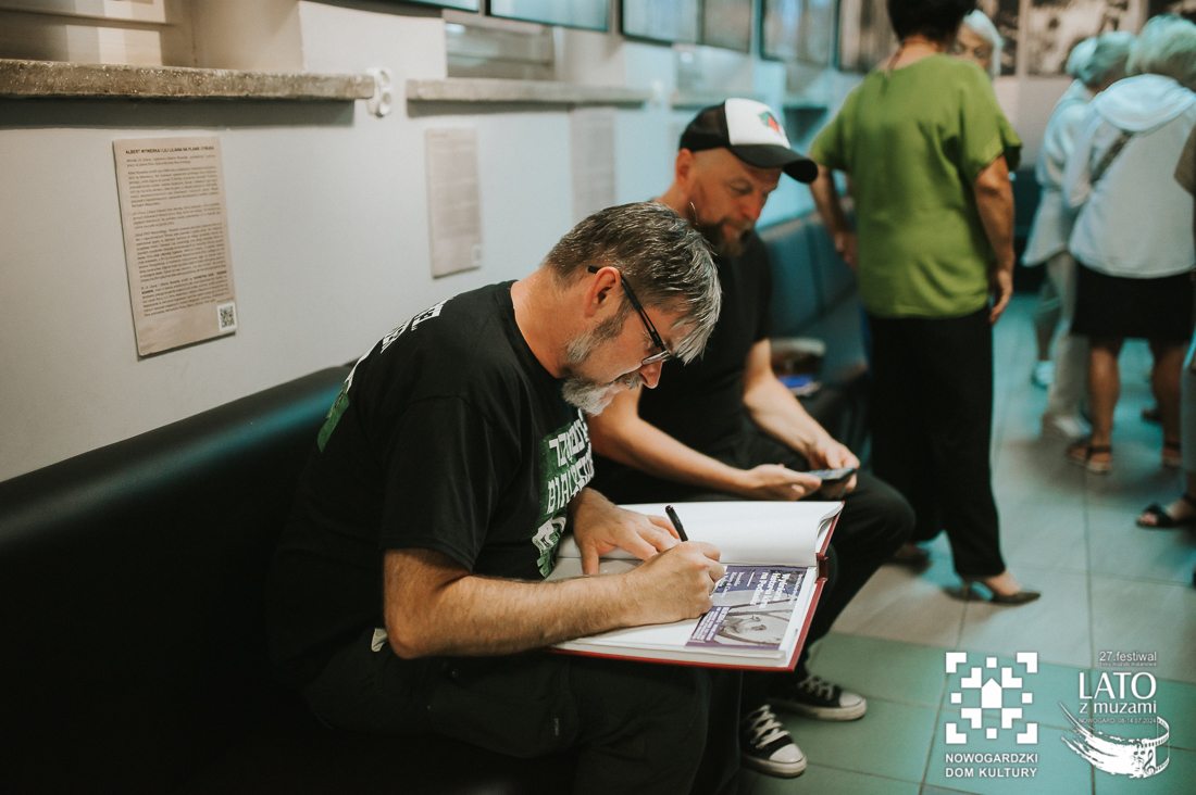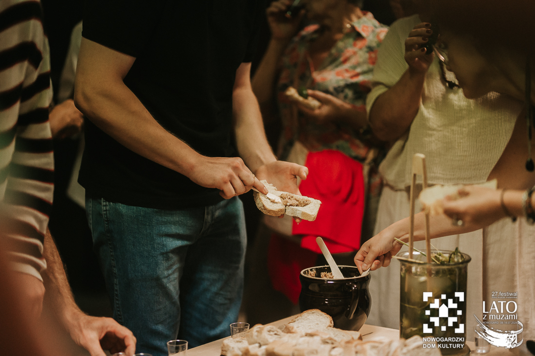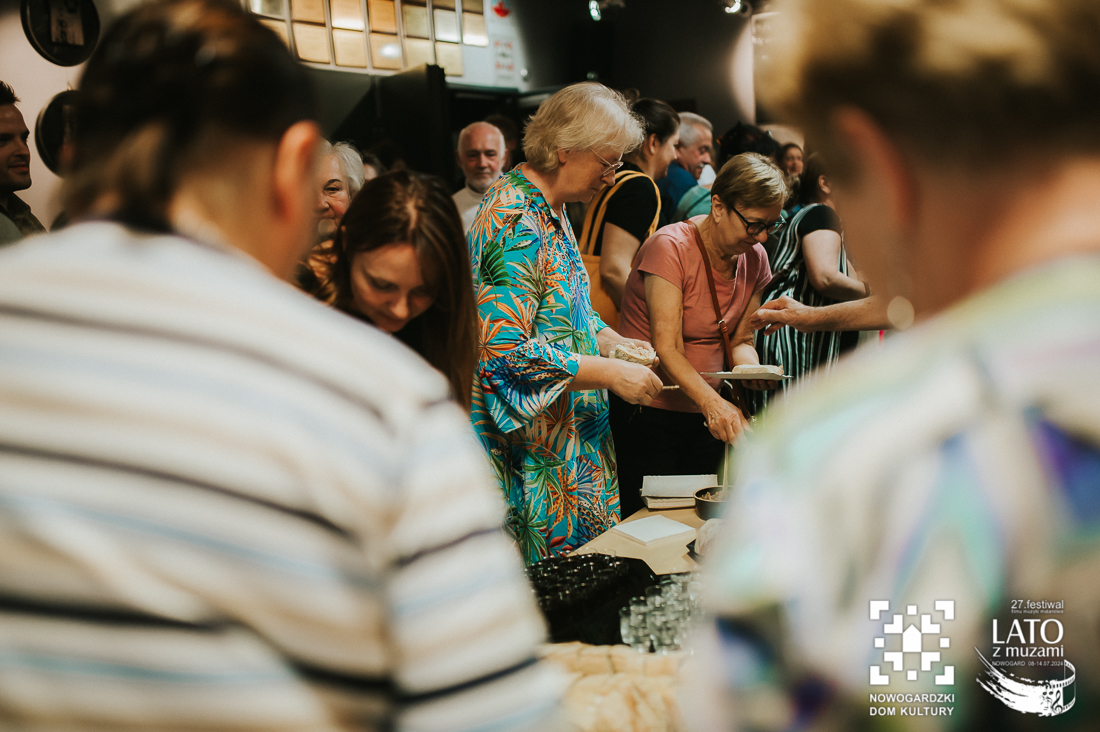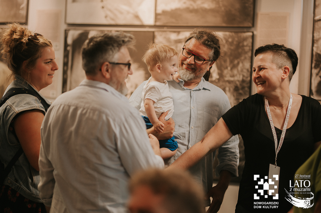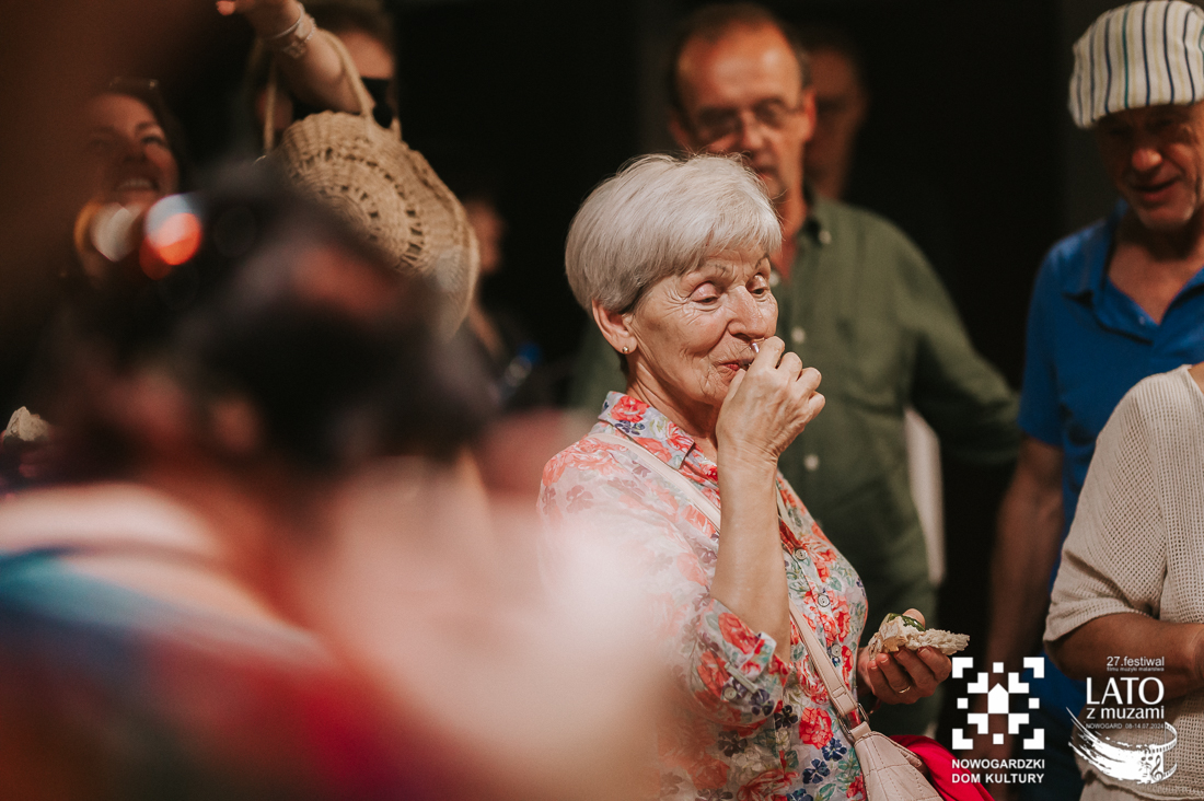 O tych ludziach właśnie, tych nieco zapomnianych, a wybitnych osobistościach, przypomina nam wystawa „Wyśniona historia kina na Podlasiu”. To nie tylko pełne kunsztu zdjęcia wykonane archaiczną techniką mokrego kolodionu, ale również historie, które tworzą razem niesamowitą i wyjątkową opowieść. Wernisaż uatrakcyjniły relacje z pierwszej ręki twórców, którzy byli razem z nami w ten poniedziałkowy wieczór. Andrzej Górski, Tomasz Adamski i Maciej Rant pokazali nam nie tylko historię kina, dzięki Nim zobaczyliśmy również cząstkę podlaskiego życia. Po oficjalnym otwarciu wystawy mieliśmy również okazję obejrzeć na dużym ekranie blok filmów związanych z Podlasiem, z ich kulturą, miłością do natury, a także z bieżącymi problemami. Pisaliśmy już o tym, że zadaniem Festiwalu jest wywoływanie refleksji i głębokich rozważań? Tym razem również tego nie zabrakło. Wszystko odbywa się jednak w przemiłej atmosferze i przy kulturalnych rozmowach. Wernisaż zakończył poczęstunek podlaskimi przysmakami. Mieliśmy też okazję powalczyć z duchem puszczy 😉 – wszyscy z tej walki wyszli obronną ręką. To był przemiły wieczór, a kolejne dni zapowiadają się równie dobrze. Zapraszamy na bajki, filmy, spotkania z twórcami. Obiecujemy, że wrażeń nie zabraknie.