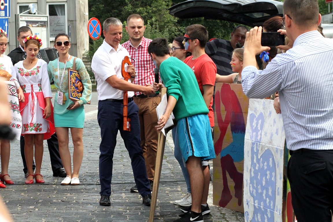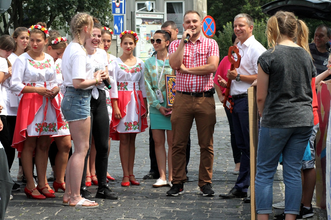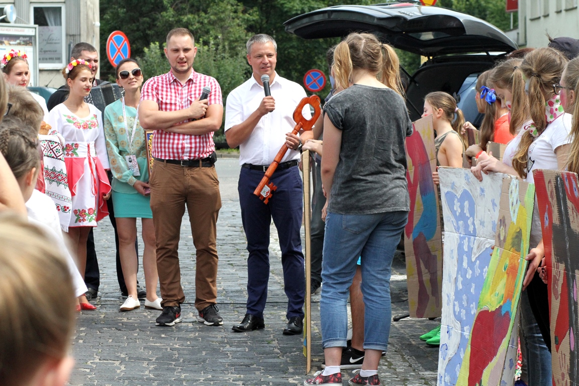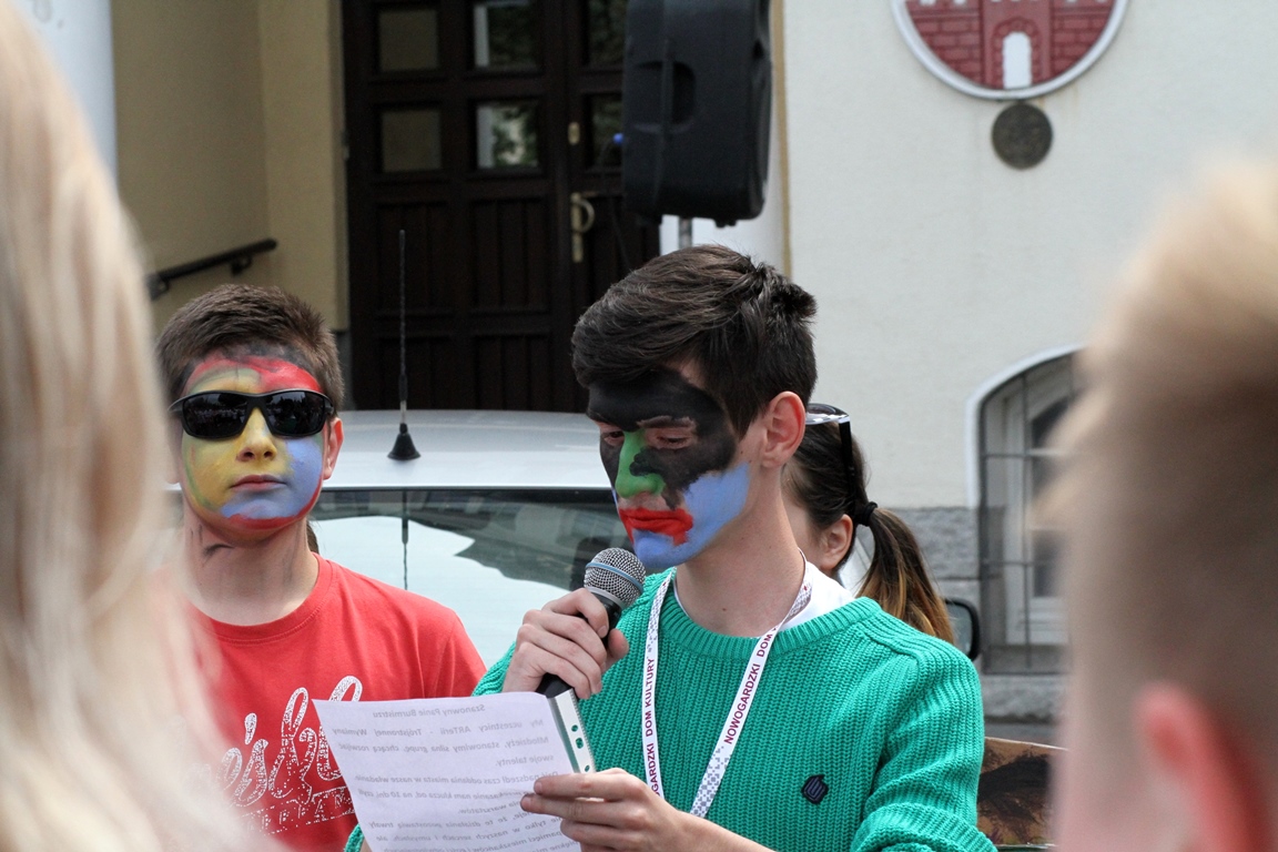 Barwny korowód w rytmie poloneza dotarł pod drzwi ratusza, gdzie odbyła się główna ceremonia. Jednak nie łatwo było przejąć klucz – warunkiem było wymienienie trzech pozytywnych cech naszego miasta. Ochotniczki z Niemiec przyszły wszystkim z pomocą i okazało się, że w oczach naszych gości Nowogard jest miastem kultury, ma ładną architekturę, a przede wszystkim miłych i gościnnych mieszkańców. Tym sposobem warsztatowicze przejęli władzę nad miastem na najbliższe siedem dni, a w podziękowaniu Włodarzowi zaprezentowali krótki program artystyczny na Placu Wolności. Zapraszamy do obejrzenia fotorelacji. (MS)