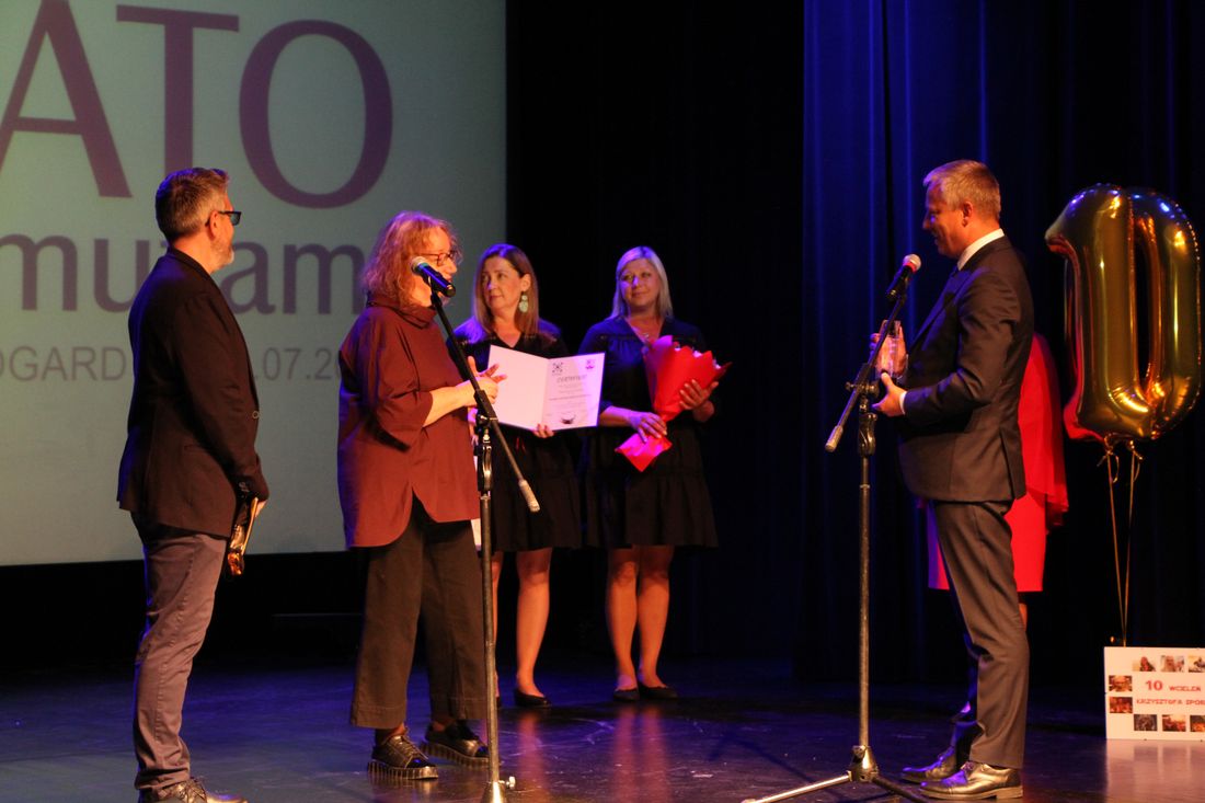 Miłym zaskoczeniem dla wszystkich było złożenie życzeń i wręczenie prezentów Krzysztofowi Spórowi z okazji 10-lecia artystycznego szefowania naszemu festiwalowi. Jubilat nie krył wzruszenia!