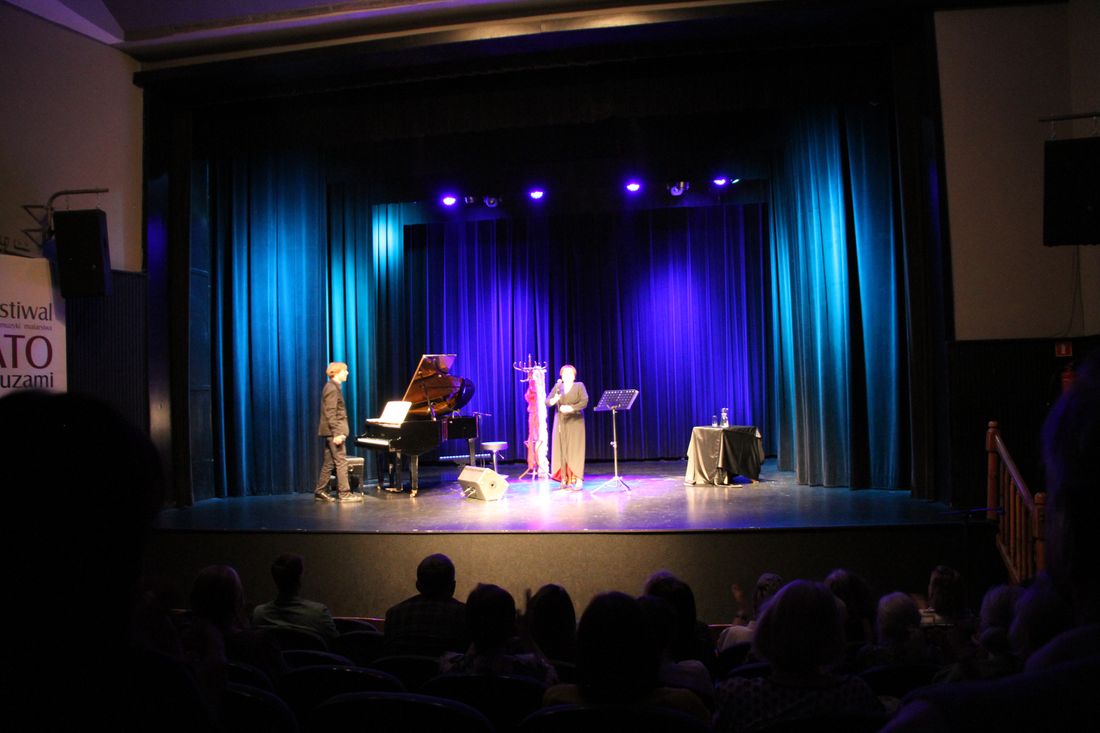 Wyjątkowym wydarzeniem artystycznym był niewątpliwie recital Krystyny Tkacz „W drodze pod wiatr”. Festiwalowa publiczność usłyszała brawurowo wykonane kompozycje Agnieszki Osieckiej, Krzysztofa Komedy, Jerzego Wasowskiego, Bertolda Brechta, Kurta Tucholskyego, Piotra Bukartyka i innych, a przy fortepianie aktorce towarzyszył Piotr Sawicki. Krystyna Tkacz to artystka, która zaznaczyła wyraźnie swoje miejsce w sztuce aktorskiej. Mówi o sobie „Jestem aktorką śpiewającą a nie aktorką - piosenkarką" i to w zasadzie tłumaczy wszystko a równocześnie stawia ją w zupełnie innym wymiarze...rzadko osiągalnym dla wykonawców. Do zawodu przygotowana jest wyjątkowo starannie: ukończyła Liceum Muzyczne we Wrocławiu (śpiew, klarnet, perkusja) oraz Państwową Wyższą Szkołę Teatralną im. L. Solskiego w Krakowie. Zadebiutowała w czasach studenckich na festiwalu Piosenki Studenckiej w Krakowie, zdobywając II nagrodę. Dwa lata później na Festiwalu Piosenki Polskiej w Opolu zajęła III miejsce. Jej recitale na Festiwalu Piosenki Aktorskiej we Wrocławiu przyjmowane były zawsze owacyjnie, natomiast kreacje w piosenkach Brechta przeszły już do legendy. Również nowogardzka publiczność nagrodziła owacjami występ artystki. Przed nami kolejne, pełne atrakcji dni festiwalu. Zapraszamy serdecznie! (ms)